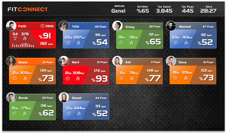 Üyeler, öğrenciler, sporcular yaptıkları çalışmaların geçmişini FitConnect uygulaması üzerinden grafiksel olarak görebilirler. Haftalık olarak çalışma performanslarının trend analizini takip edebilirler. Geçmiş antrenmanlarını dakika bazında ortalama nabız, maksimum nabız, kalori, adım sayısı gibi bilgilerini inceleyebilirler.